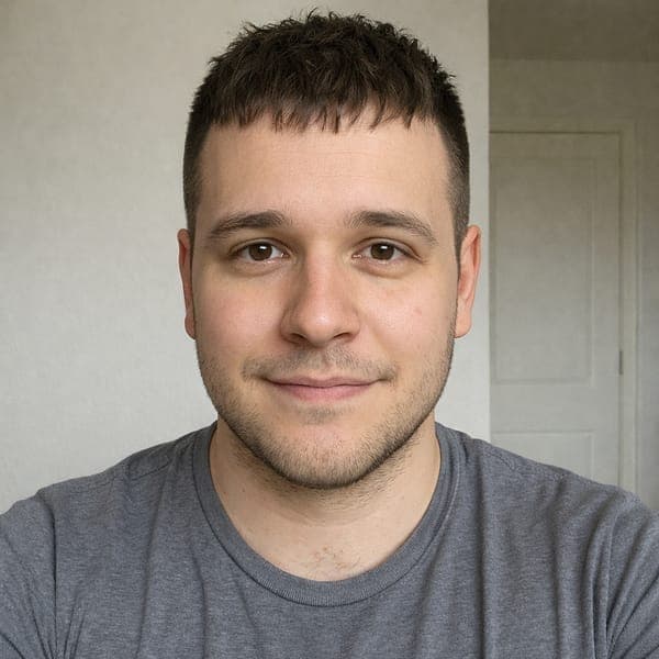 Front-facing selfie · clear lighting · no hat or glasses